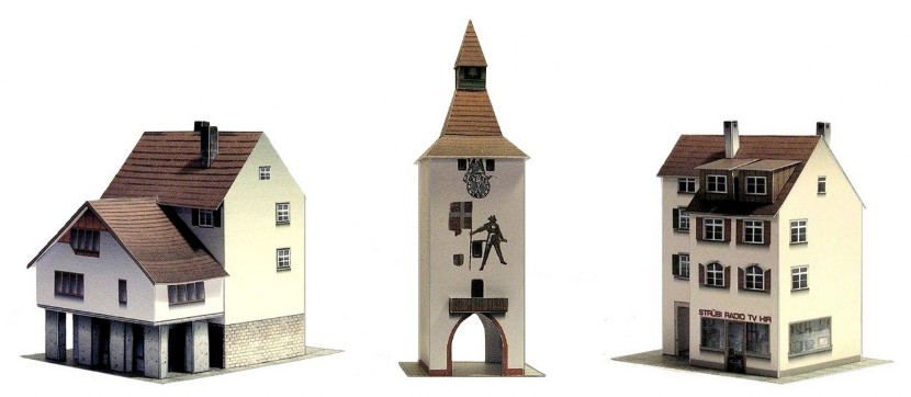 Drei Häuser im Set. Stadttor mit zwei anschliessenden Stadthäusern.